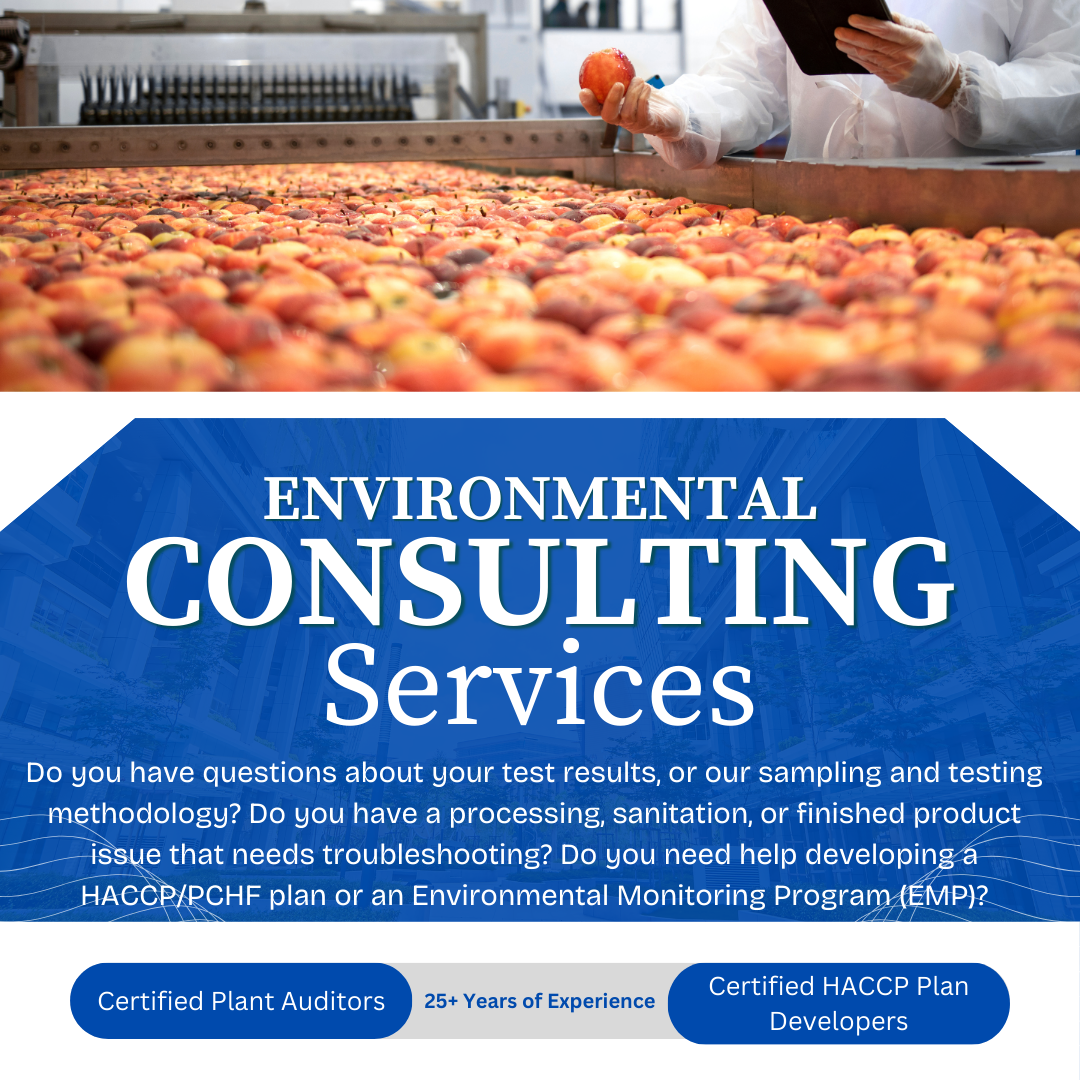 Do you have questions about your test results, or our sampling and testing methodology? Do you have a processing, sanitation, or finished product issue that needs troubleshooting? Do you need help developing a HACCP/PCHF plan or an Environmental Monitoring Program (EMP)?